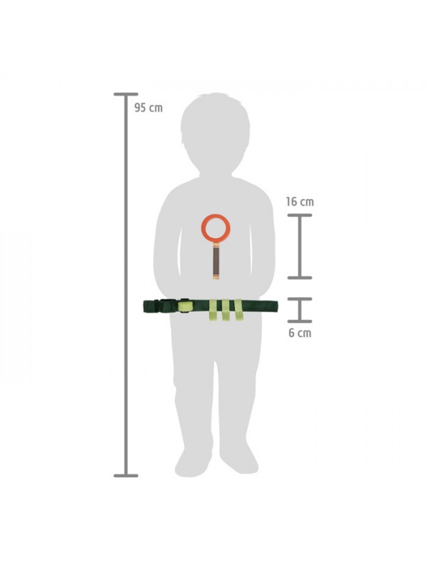 - Entdecker-Werkzeuggürtel – verstellbarer Gürtel mit Schnallen und Aufhängeschlaufen, inkl. Holzpfeife, Lupe, Pinzette, Kompass, Seil und Baumwolltasche zum Sammeln
