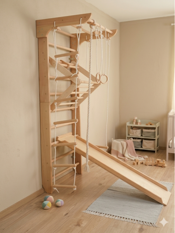 - Schaukel, Trapez und Kinder-Dreiecksgriff – für spielerische und sichere Unterhaltung.