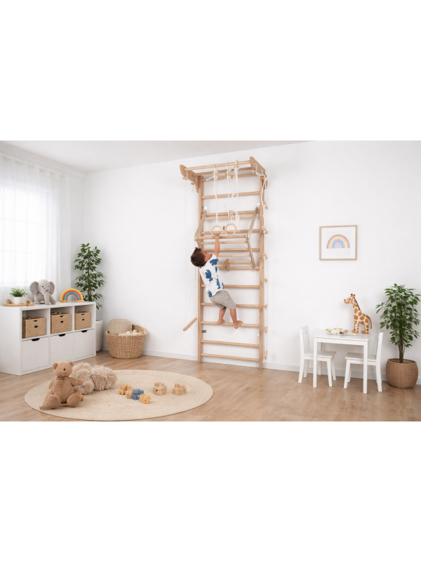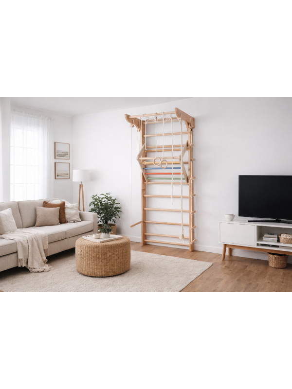 Suchen Sie ein vielseitiges Trainingsgerät, das sowohl Kinder als auch Erwachsene begeistert? Unsere Kletterwand mit Zubehör ist die ideale Lösung für aktives Zuhause! Hergestellt in Europa aus hochwertigen, natürlichen Materialien, die Sicherheit und Langlebigkeit garantieren, und so konzipiert, dass sie nur minimalen Platz benötigt – perfekt für jedes Zuhause.